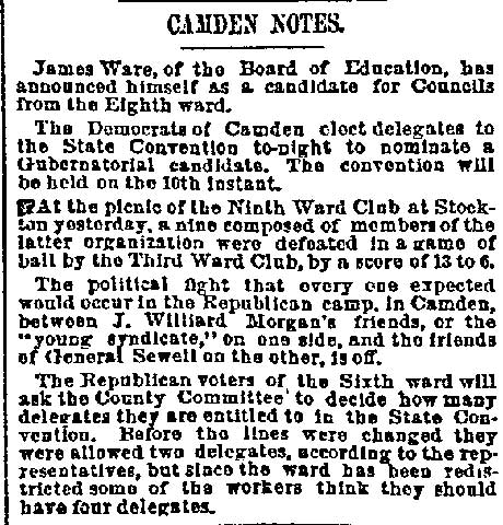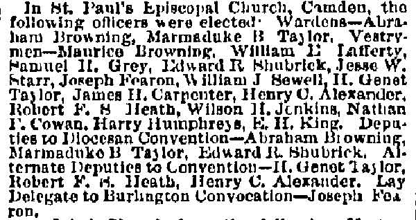 William Joyce Sewell - John R. McPherson - William J. Browning - George S. West Harry C. Sharp - Walter Phillips - christopher j. mines jr. - Thaddeus P. Varney Charles Sayrs - J.O. Smith - Jesse Carey - Joseph Bromley - William White |