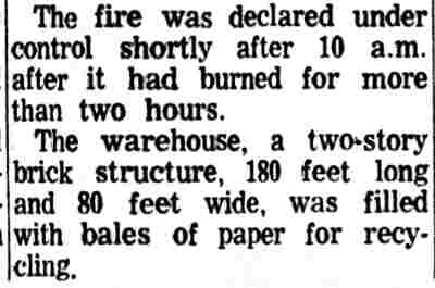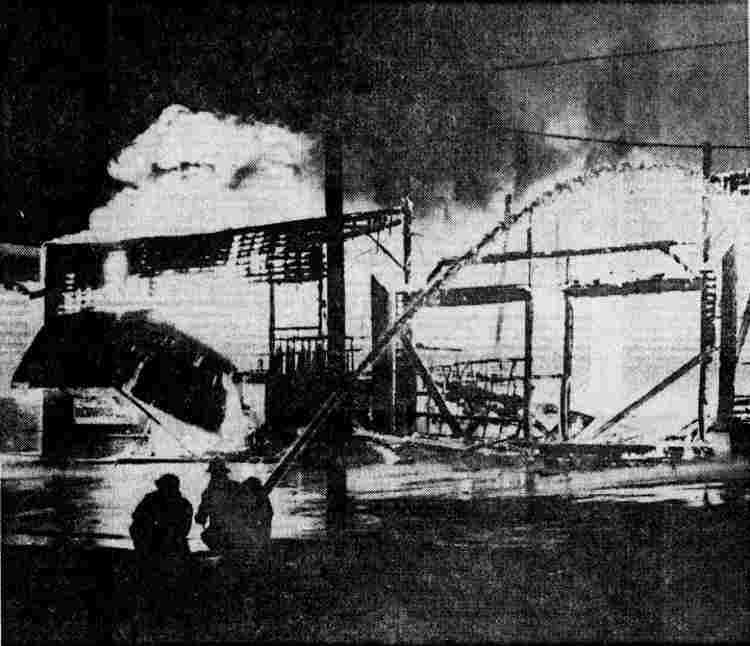 ABOVE, LEFT: SMOKE SWIRLS around fireman as he leans from second-floor window of row house on Mechanic Street near 4th where three small boys perished in blaze |