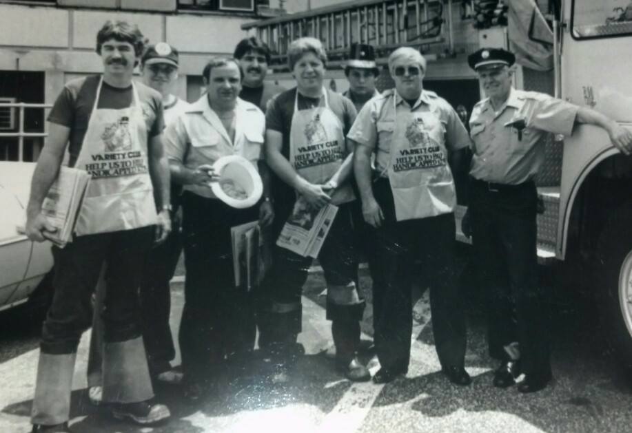 1980s - Camden Firemen outside of City Hall, collecting for the Variety Club. |