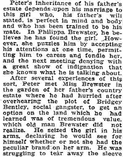 "A three-reel mystery story, by Clinton H. Stagg, featuring Bert Delaney, Mignon Anderson, and others. The story is one that catches and holds the interest from the beginning. The appearance of a knotted cord means that the millionaire and the young detective are marked for death. The former is killed, but the detective outwits the gang after numerous adventures. This is well constructed and has several moments of melodrama, which is enjoyable in this type of story. The ending contains a surprise. Altogether this makes a successful offering." |