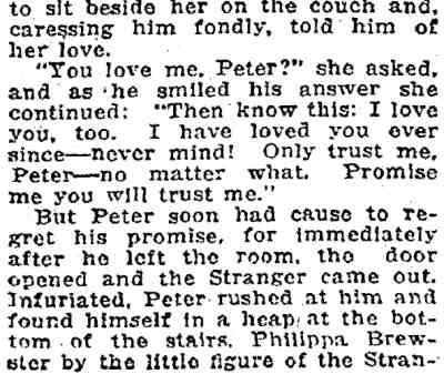 Gladys Hulette and William Parke Jr. are joined by a young actor named Richard Barthelmess, who soon would become one of the biggest stars if the silent era, and made a number of films after sound was introduced, most notably Only Angels Have Wings, with Cary Grant and Jean Arthur. Barthelmess' mother was the then-famous actress Alla Nazimova, who was a great friend of Edith Luckett, one of William Parke's leading ladies in his stage years in Massachusetts. |