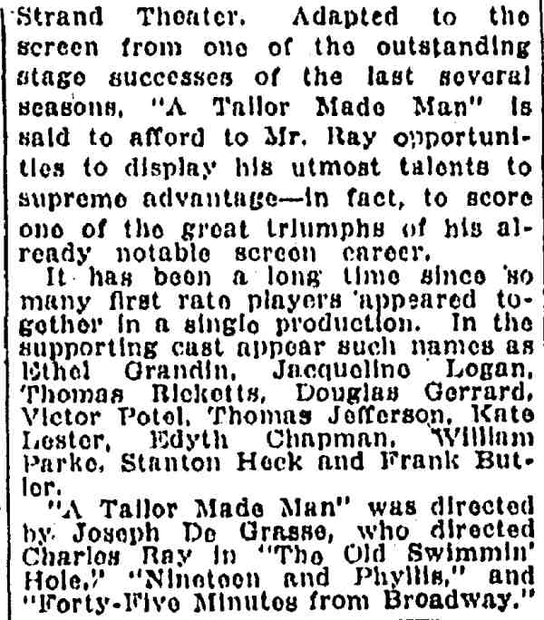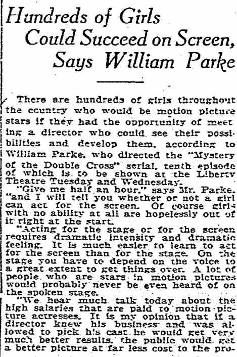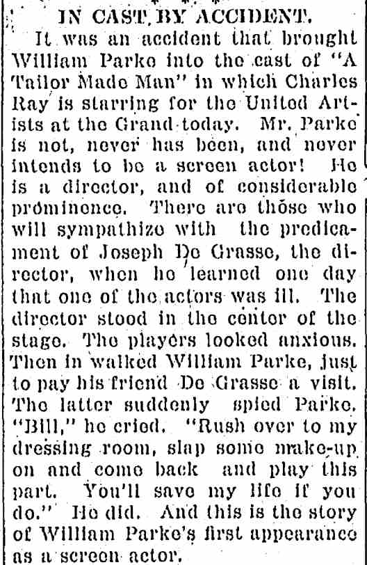 William Parke's film directorial debut, entitled Great Men Among Us. Little is known of this movie and it, like most of William Parke's works, is presumed lost. |