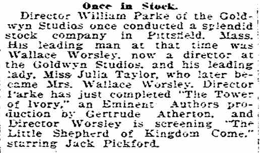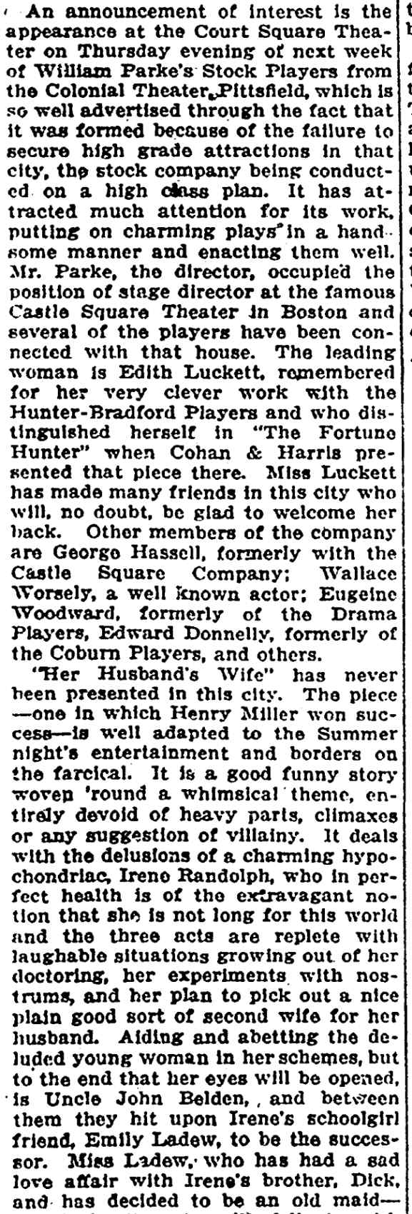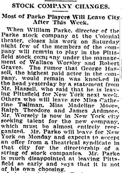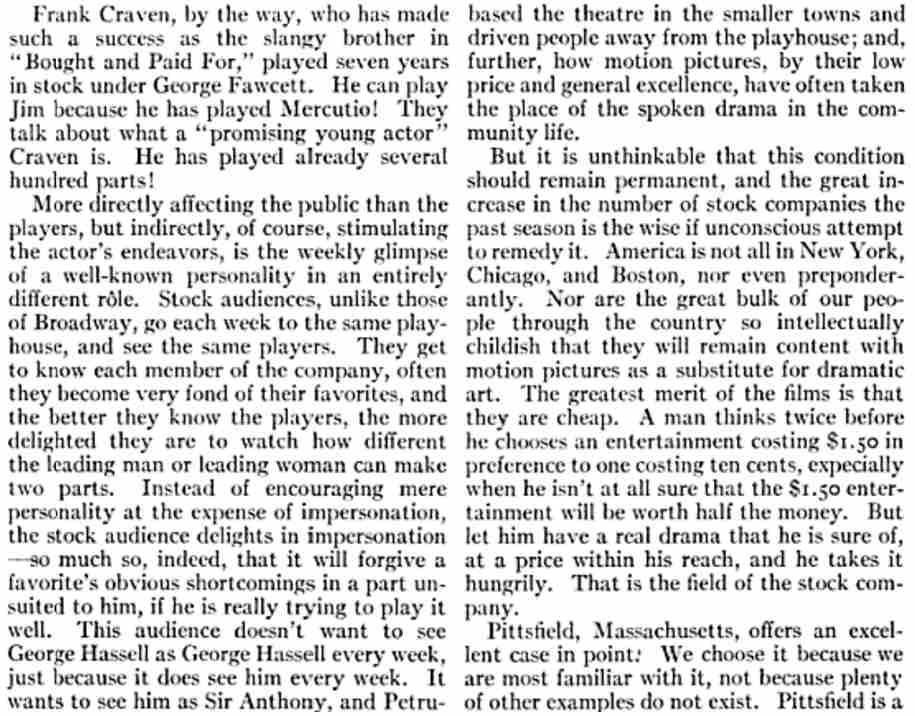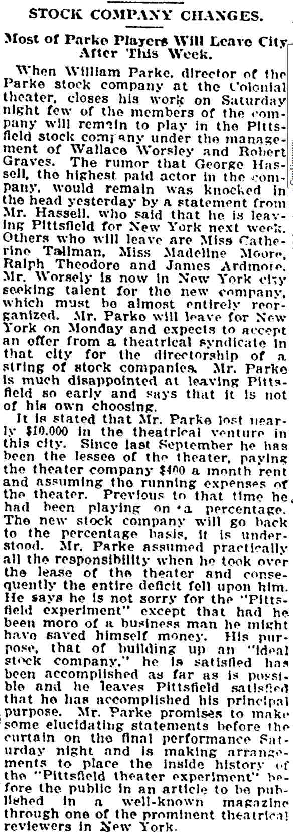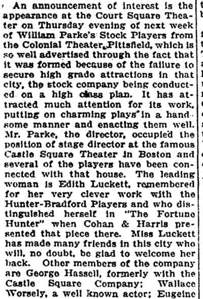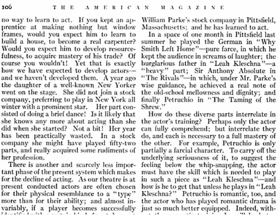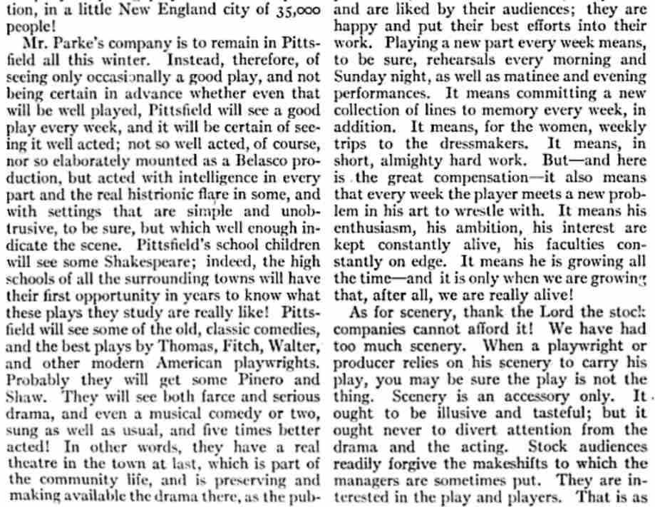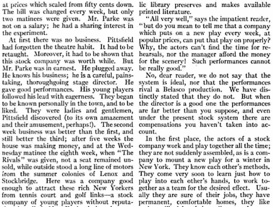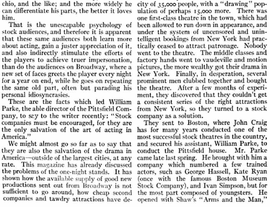 American - November 1912 There is quite a lot about WiIliam Parke's summer company in this article |