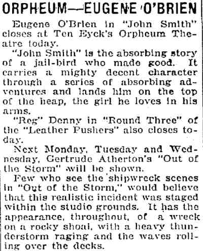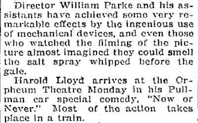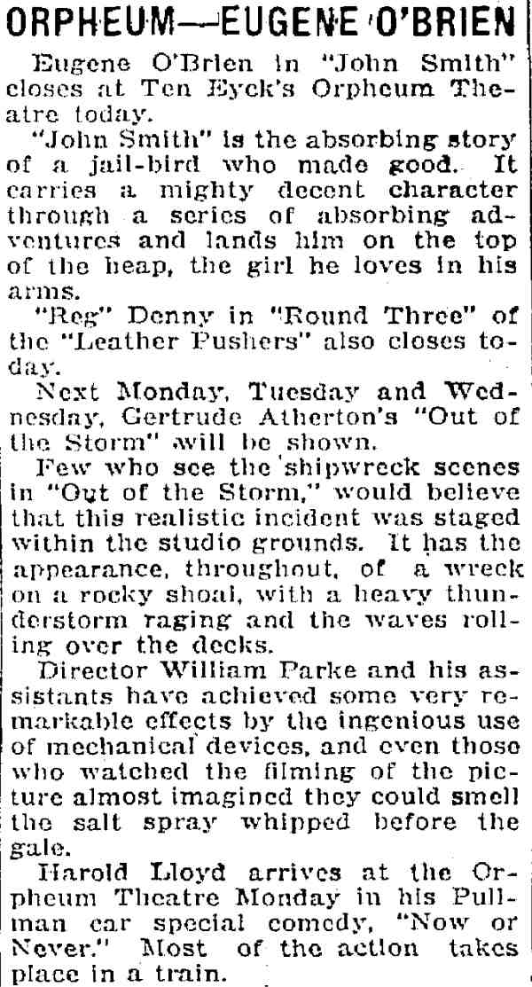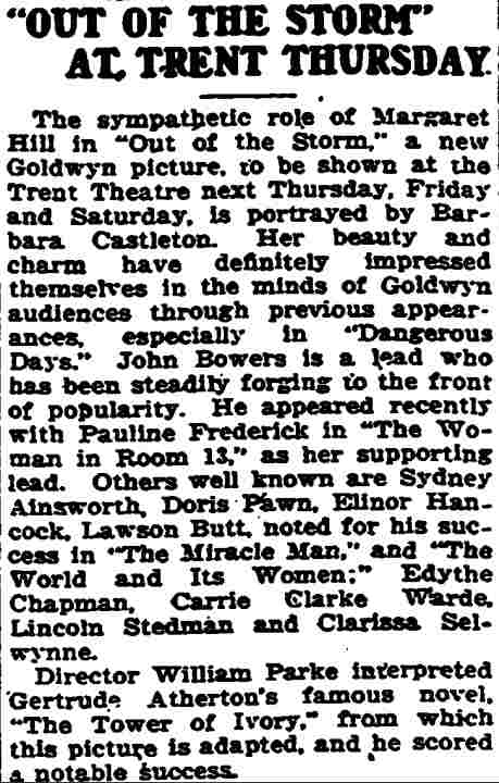 Lloyd This was a second run showing of Out of the Storm, which previously had been screened in Trenton in 1920.