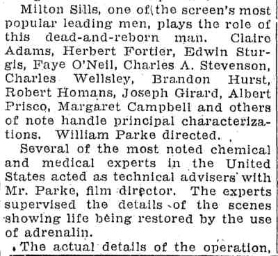 Claire Adams and Herbert Rawlinson are the leads in this film. Also credited are Margaret Campbell and Herbert Fortier who had both worked in Legally Dead. |