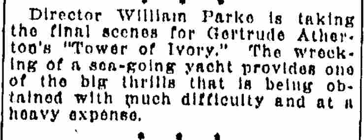 This movie was based on Gertrude Atherton's 1910 novel, Tower of Ivory, which you can read for free by clicking here. |