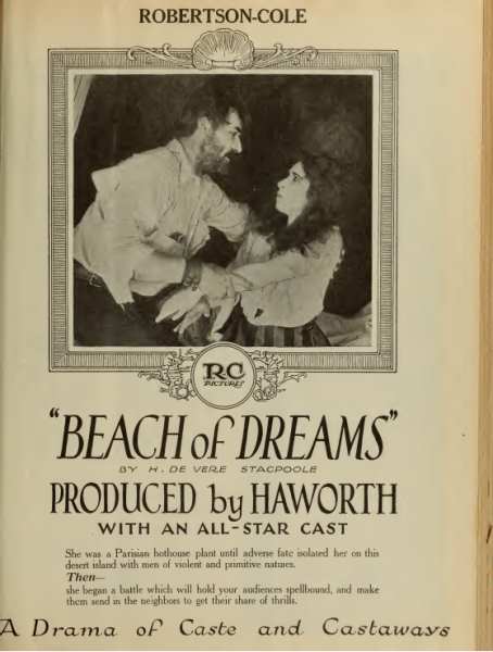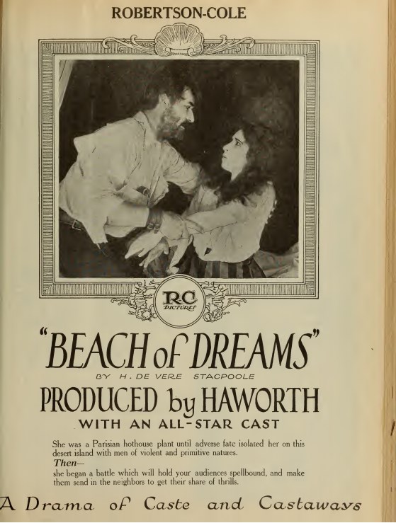 Beach of Dreams starred Noah Beery and Edith Storey, who, beginning in 1909 at the age of 17, had appeared in 178 films when this was made. She was an athletic brunette heroine with Vitagraph and Metro. She often appeared in westerns, period dramas and adventure films. At the height of the Spanish Influenza Epidemic, Edith Storey drove an ambulance for the National League for Women's Service in New York and worked as a night nurse in the overcrowded hospitals of the city. She made one more movie after Beach of Dreams, then retired from films in 1921, living out the remainder of her life in rural Long Island. Noah Beery was well known as was his brother Wallace Beery. He made over 200 movies, often in the role of a cruel villain. His son Noah Beery Jr. spent 64 of his 81 years in front of the camera, and is best remembered as James Garner's father in The Rockford Files television show. |