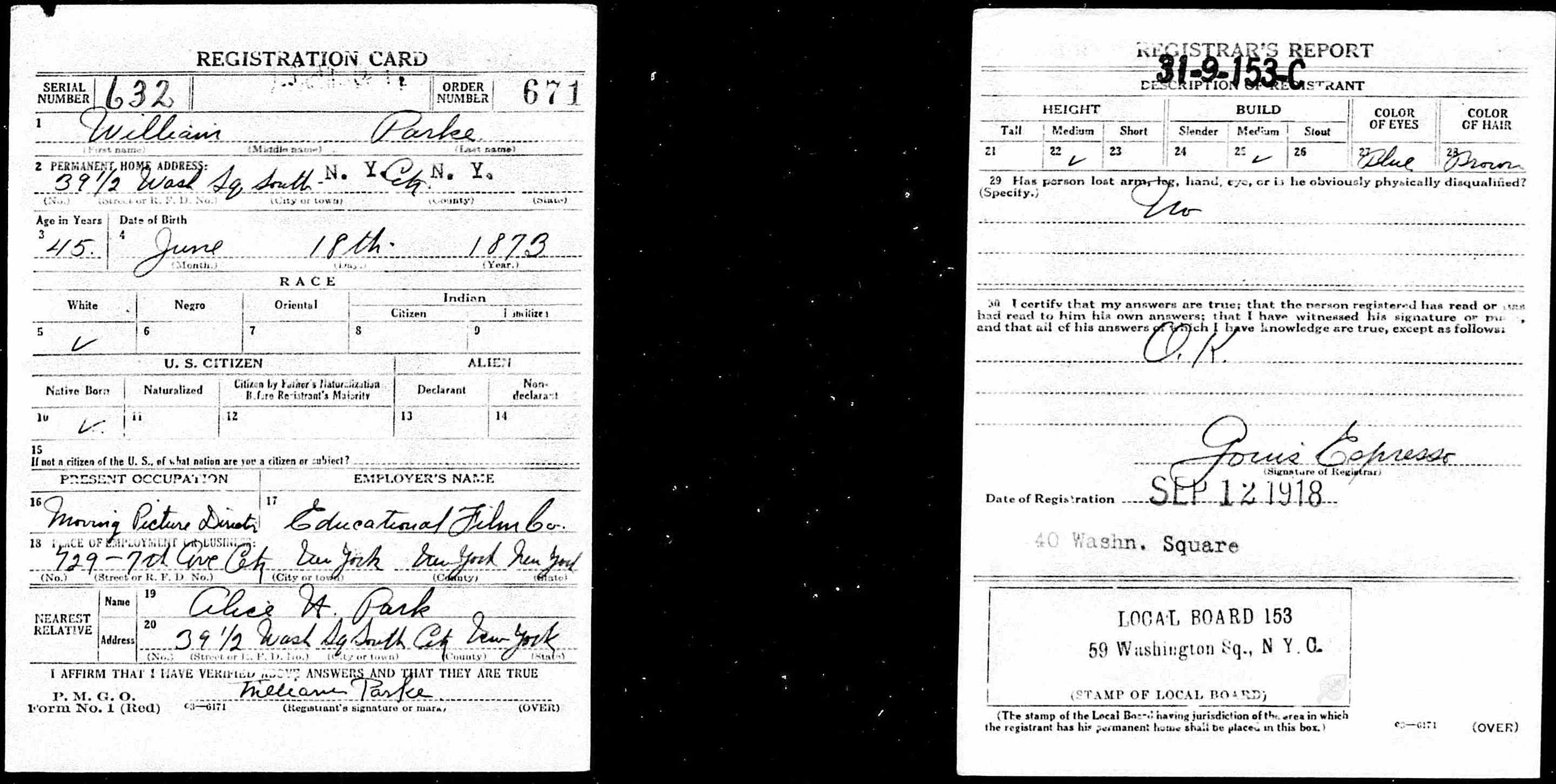 Parke as Part of the Marriage License Bureau |