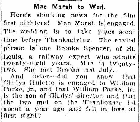 Another Gladys Hulette and William Parke Jr. pairing. The two would announced their engagement a few months later. |