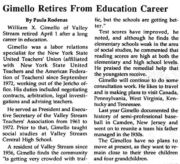In 1956 Bill Gimello accepted a teaching and football assignment at