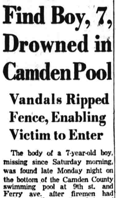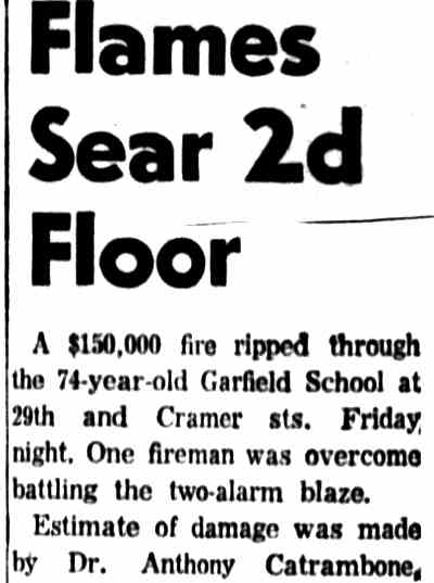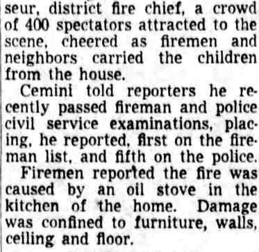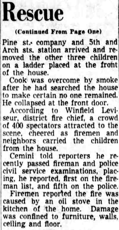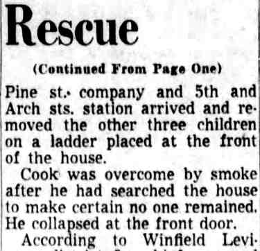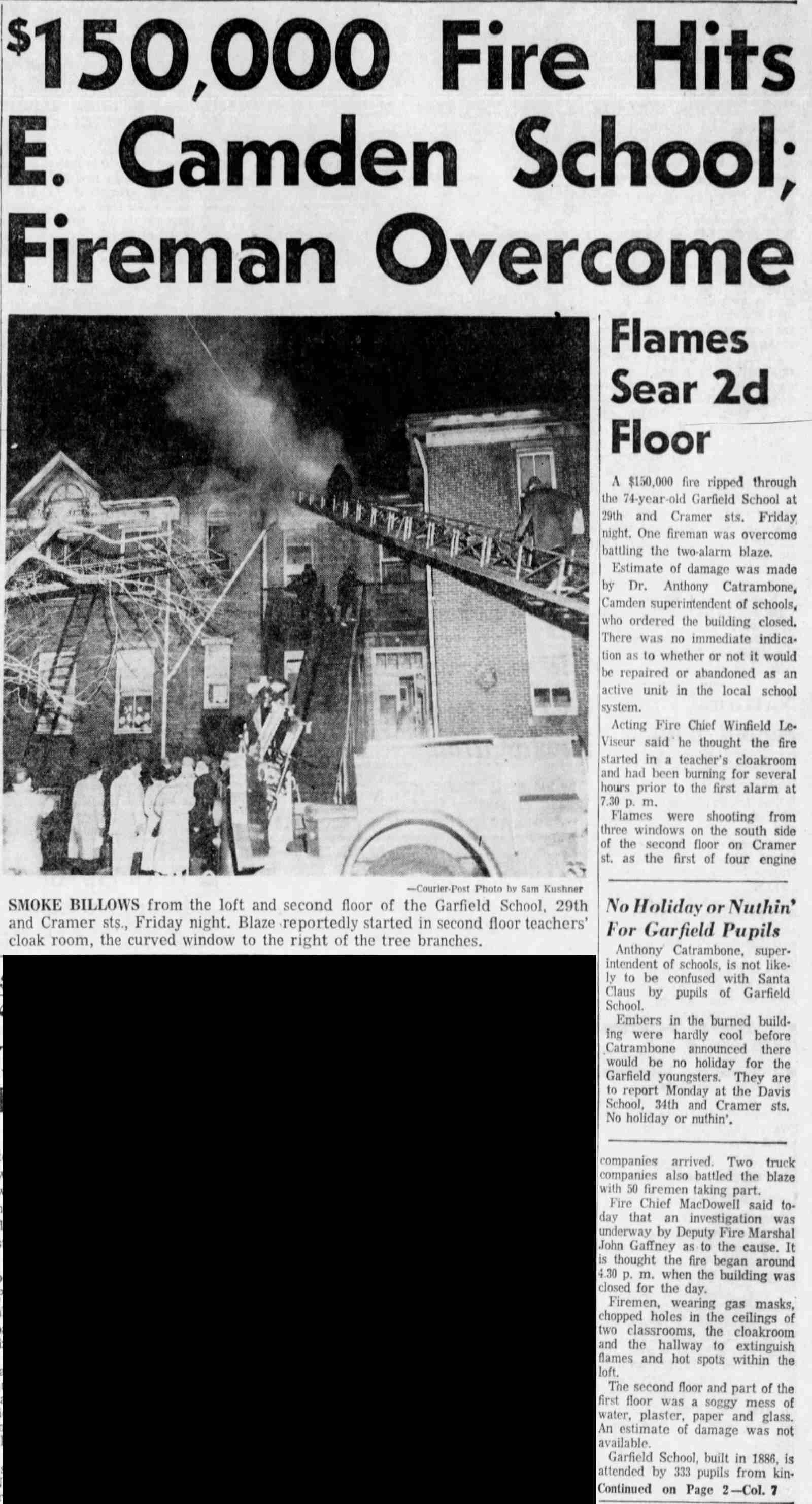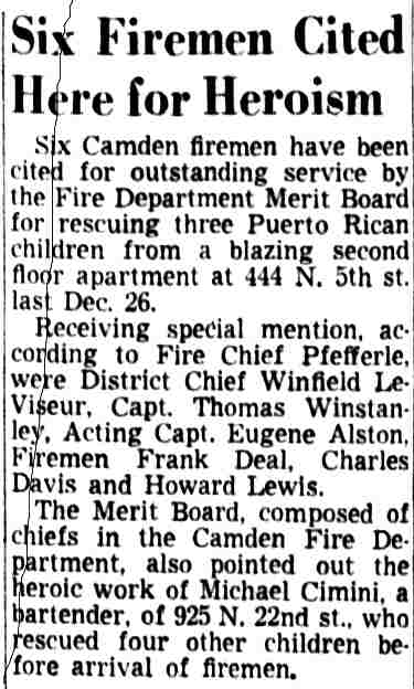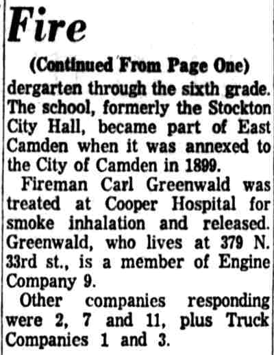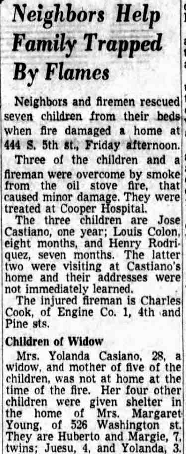Camden Courier-Post ONE OF SEVEN children rescued from a burning house at 444 South 5th Street Friday is shown being carried to safety in the arms of a fireman. Three of the children and a fireman were overcome by smoke. Two civilians rescue four of the children before firemen arrived.