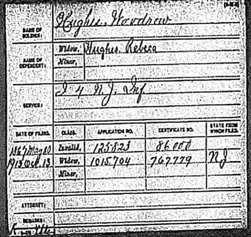 Hughes died on October 9, 1913. His widow filed for her Civil