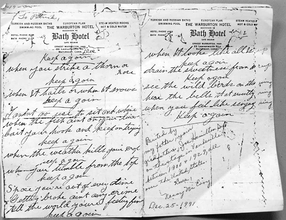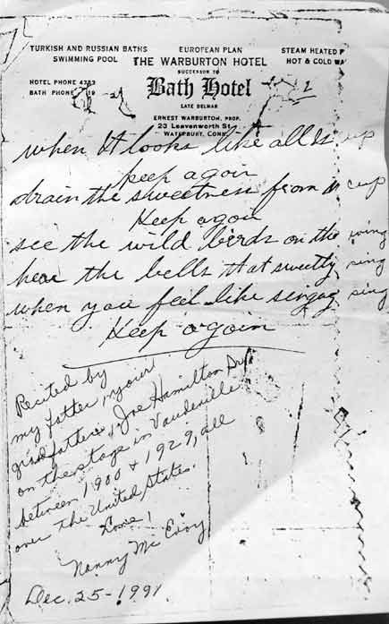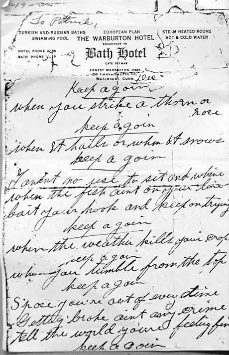 Goin' Part of Joe Hamilton's act was the recitation of poems like the one below. |