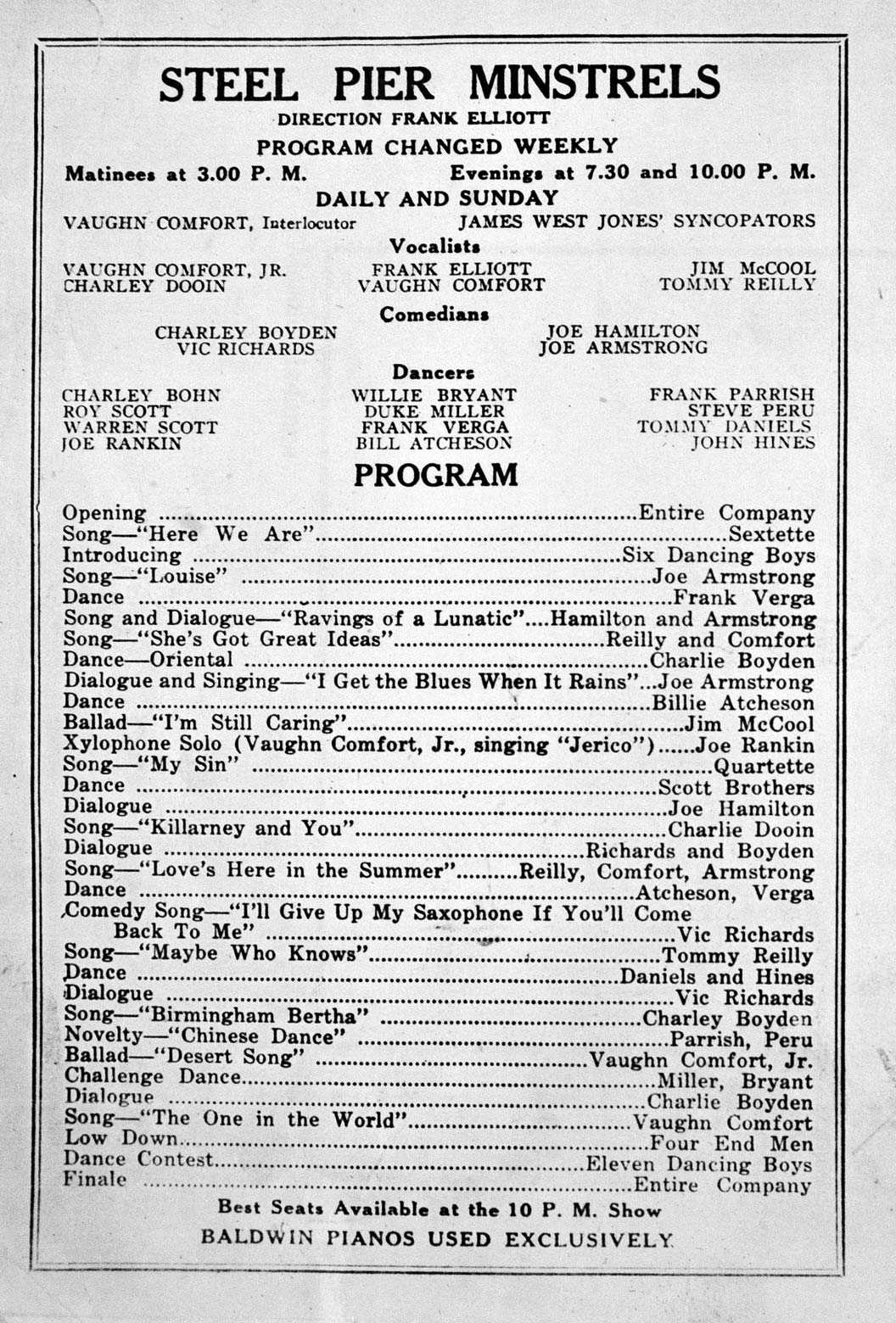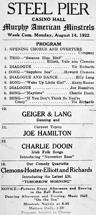 Frank Elliott's Steel Pier Minstrels - Atlantic City, N.J. - 1927 |