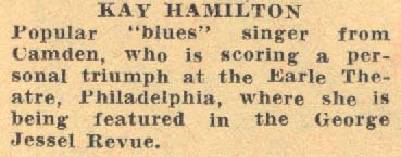 If anyone has any further information about Kathryn "Kay" Hamilton, or her father, vaudeville and minstrel show performer Joseph Hamilton, or Vaudeville in Camden NJ, Please comment at the bottom of the page! Phil Cohen |