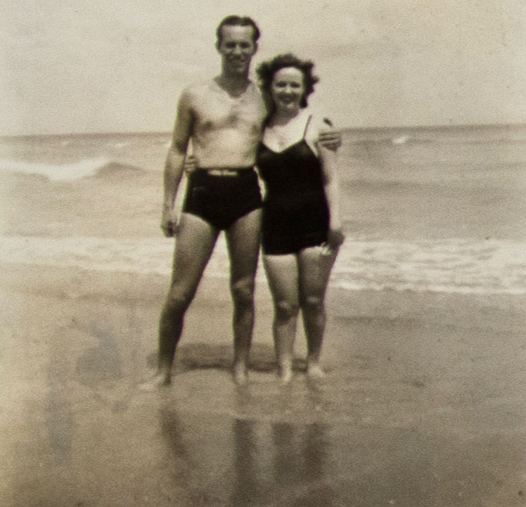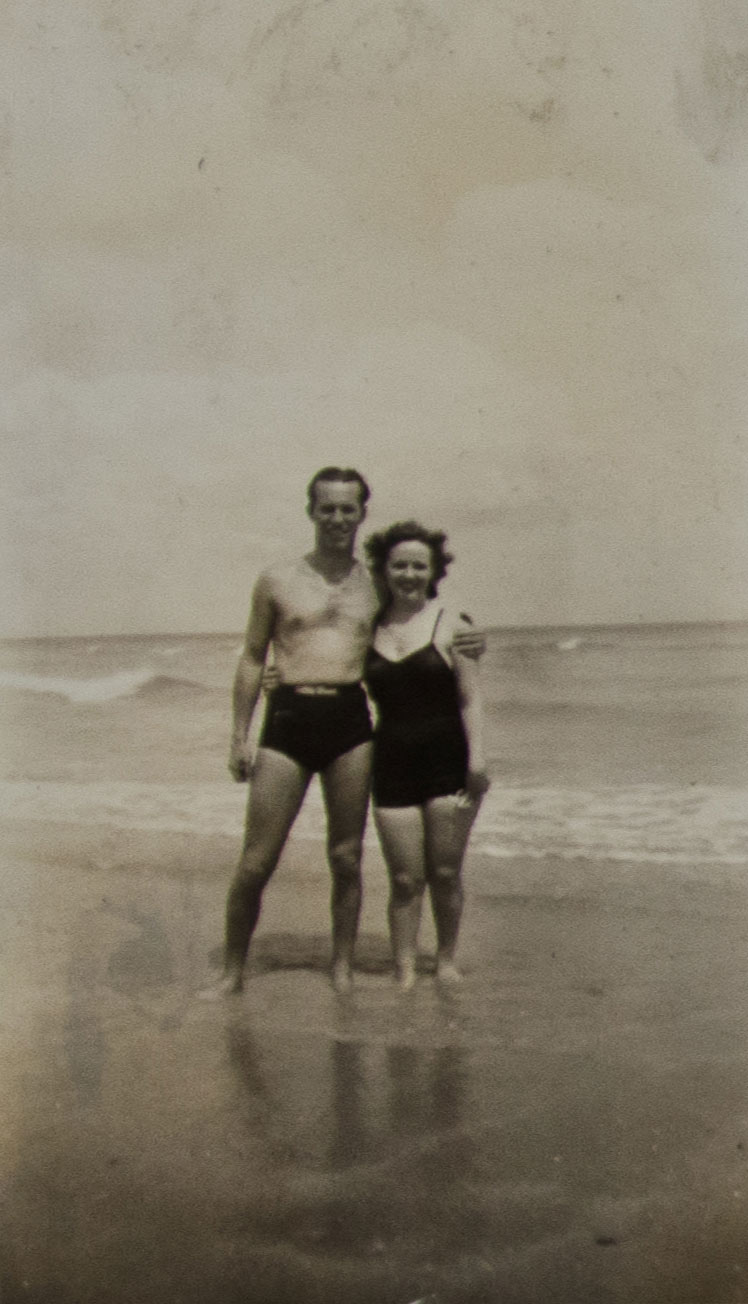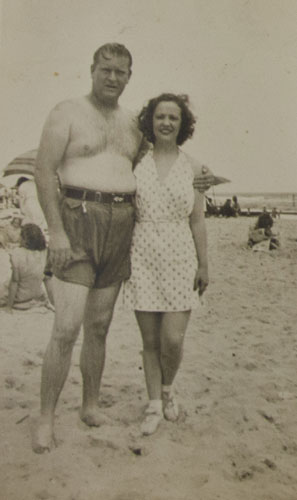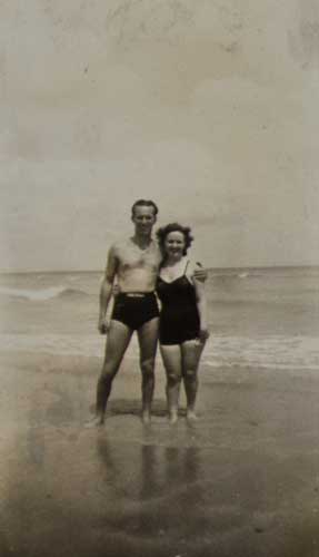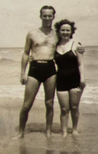 Kay Hamilton on beach with Charles Kemper. Kemper was a vaudeville trained actor who did a number of shorts in the 1930s and went on to better roles in the 1940s. Sadly, he was killed in a car accident ion May 19, 1950 at the age of 49. My best guess is that these pictures were taken in California when Kay went to Hollywood in 1937. |