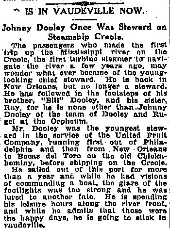 Interestingly enough, the Dooley family is still involved in show business. John Vaughan, who has been living in Berlin, Germany for many years, is a singer, songwriter, and composer. You can find out more about John at his website www.john-vaughan.com. If anyone has any further information about this act, Please comment at the bottom of the page! Phil Cohen |
