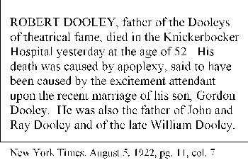 Rogers Dooley Obituary New York Times August 5th, 1922 |
