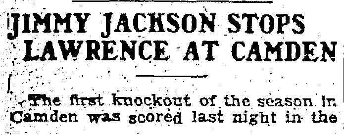 BATTLES ATTRACT BIG CROWD Fifteen sizzling amateur boxing bouts, together with nine acts of vaudeville, were presented to a capacity crowd in the St. Joan of Arc Church gym, Fairview. The proceeds derived from the affair will go toward the church building fund. In the feature bout, Bob Zimmerman, of Fairview, unintentionally fouled Eddie O'Tell of South Camden, in the first round and Referee Joe Bonnell immediately stopped the fuss. Zimmerman was in the lead when O'Tell, in attempting to avoid a left hook to the body, leaped into the air with the result that the punch landed low. Zimmerman, in order not to disappoint the crowd went three rounds with Mickey Murtha. Battling Mack and Pee Wee Ross staged a clown act, while Johnny Lucas met Billy De Lue; Tommy Lyons clashed with Jack Stanley; "Peaches" Gray tackled Terrible Pine; Joe Colon faced Billy Osborne, and George Anderson encountered Milton Bamford. All bouts were limited to three rounds. Deputy Boxing Commissioner Edward A. Welsh attended the affair, and when introduced by Announcer Bill Kennedy received an ovation that lasted fully five minutes. Mrs. Mary Walsh Kobus, a member of the city board of censors also was present. Sergeant Ray Smith assisted Bonell in refereeing, while John McGraw was timekeeper. It was one of the most successful affairs ever conducted by the church athletic association. |