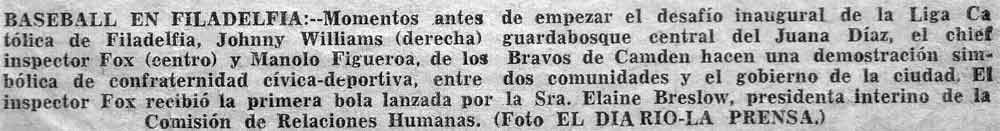 Catholic League Opening Day Johnny William of Juan Diaz, Chief Inspector Fox, & Victor "Manolo" Figueroa |