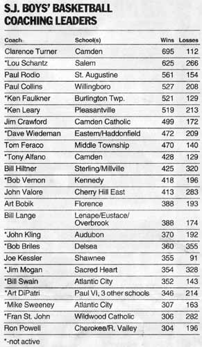 Turner is South Jersey's all-time leader in career coaching victories. His record is 729-134. His teams won 21 sectional titles and seven state titles.