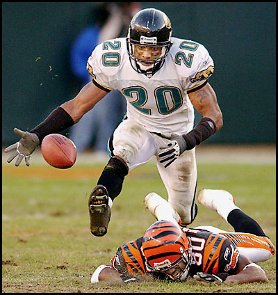 DONOVIN DARIUS was a Woodrow Wilson High School football star who played 11 seasons as an NFL safety with the Jacksonville Jaguars after a fine career at Syracuse University. He set a Syracuse record for tackles by a defensive back with 379. He had a well-deserved reputation as one of the hardest "clean" hitters in college football. He was a Big East All-Conference player in 1995 and 1996, and also lettered in indoor and outdoor hurdles, graduating in 1997 with a degree in exercise science and a minor in coaching. Darius was selected 25th overall in the 1998 draft by the Jacksonville Jaguars. The highest pick ever by the team for a defensive back, He was named to the All-Rookie team and led Jaguar defensive backs with 108 tackles in 14 games. In 1999 he switched to strong safety. He was named by Jacksonville as a franchise player in 2003. In 2004, Darius led the secondary in tackles for a seventh straight season and posted career highs in forced fumbles and interceptions. A season ending injury in 2005 stopped his consecutive start streak at 37. On November 20, 2006, during a game against the New York Giants, he broke his leg and missed the rest of the 2006 season. He currently serves on the NFL Players Association Executive Committee. |