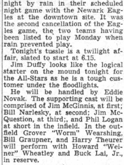 Humes Clarence Layer - Eddie Brandt Joe Murray - Don Cragin - Johnny Chambers - Tom Tracy - Abe Corotis |