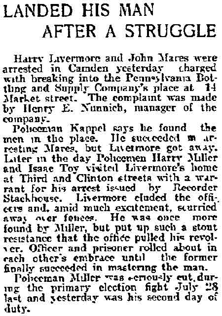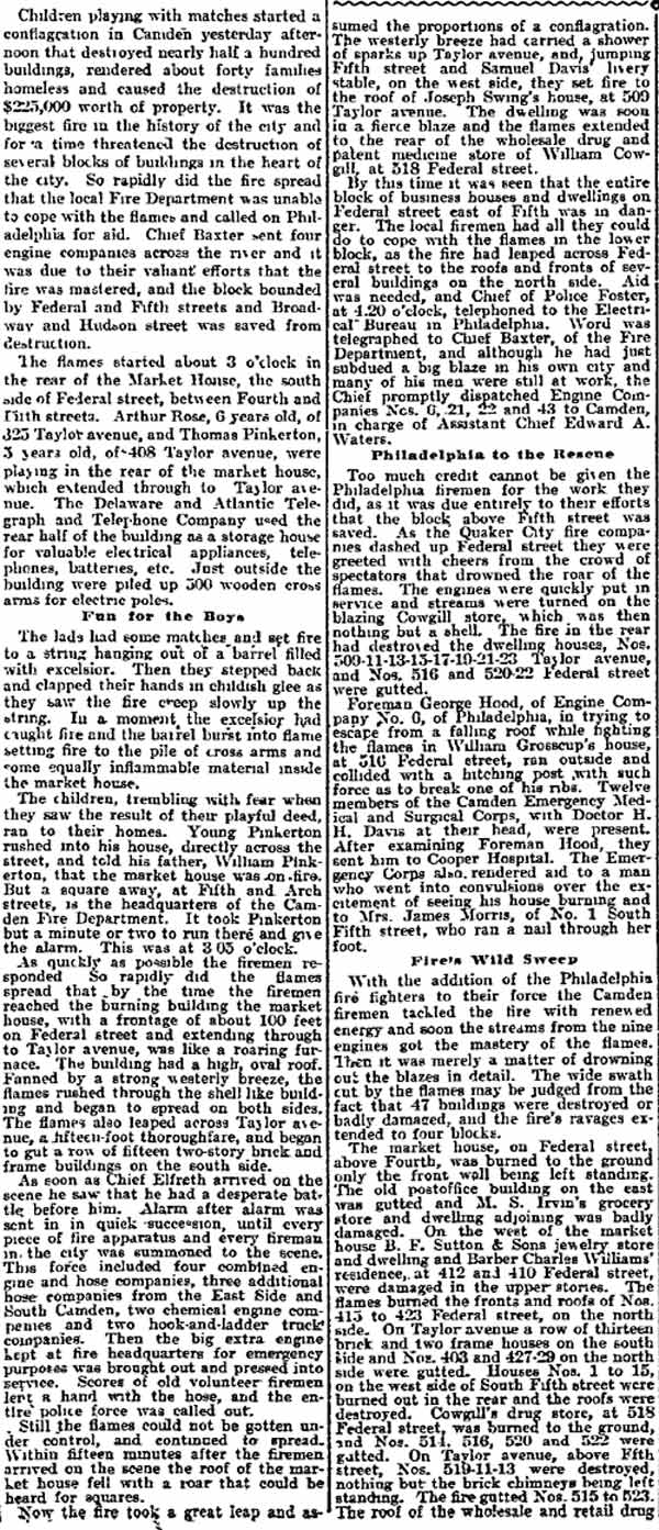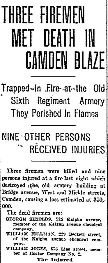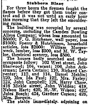 - Sperry & Hutchinson - Camden Bowling Alleys gardner corson was appointed to the Fire Department in November of 1907. |