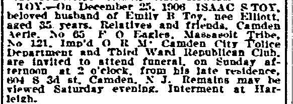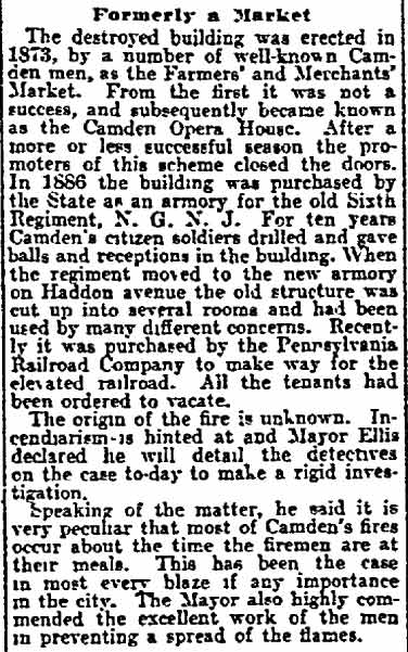 Charles H. Ellis - Elisha A. Gravenor - Harry Mines - albert shaw - Robert Colkett - Albert Keaser William Todd - William Lyons - Alonzo Dyer - broadway - Berkley Street - Elm Street Improved Order of Red Men - Camden Aerie No. 65 Fraternal Order of Eagles Third Ward Republican Club |