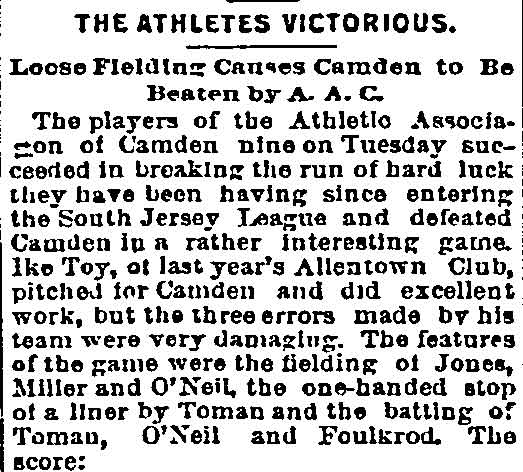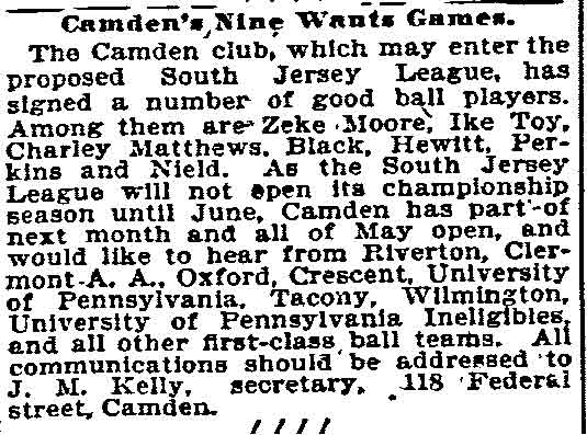 Ike Toy ____ Hewitt - ____ Perkins - ____ Nield - J.M. Kelly - Federal Street |