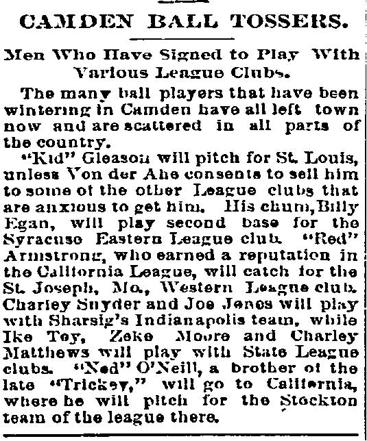 - Billy Egan - Red Armstrong Charlie Snyder - Joe Jones - ike toy - Zeke Moore - Charley Matthews "Ned" O'Neill - "Trickey" O'Neill |