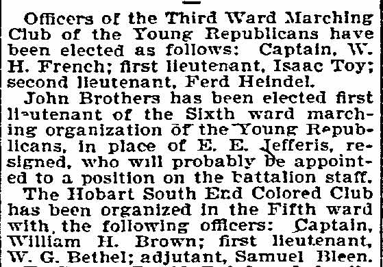 E.E. Jefferis - William H. Brown - W.G. Bethel Samuel Bleen - Hobart South End Colored Club |