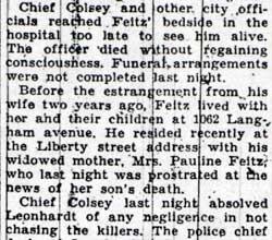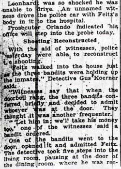 Wirtz is 37 and lives at 1197 Thurman Street. He was one of the first of the new policemen to be appointed to the department in 1924 after Civil Service was put into effect following the adoption of Commission government in 1924. He is a veteran of the World War and got a special rating for that reason when he took the Civil Service examination. In 1931 Wirtz was appointed as an accident investigator in the detective bureau and has served in that capacity ever since. He has a good reputation as a policeman and has never been in trouble before. About four years ago Wirtz figured in an automobile accident that caused serious injury to one of his legs. Rogalski was not arrested until County Detectives James Wren and Casimir Wojtkowiak took him in Monday night. The same detectives arrested Powell. Both suspects were charged with attempted holdup and robbery and committed to the county jail. Lewandowski also is in county jail, committed without bail by police Judge Lewis Liberman Saturday. |