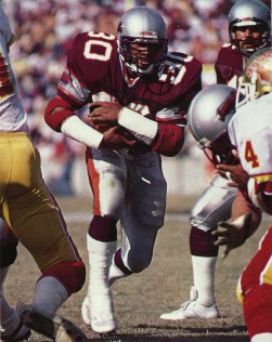 Mike Rozier was a star running back at Woodrow Wilson High School in Camden in the late 1970s, before going on to a great college career at the University of Nebraska. Twenty years after he left Nebraska, Mike Rozier owns both the Nebraska all-time rushing and scoring records, yet it is possible that he might never have gone west to Lincoln had not Nebraska assistant Frank Solich been such a keen observer of high school game films. Solich was studying movies of another player in Rozier's hometown of Camden, New Jersey. "Mike kept sticking out on the film," Solich remembers. Rozier was a Wishbone fullback in high school, yet still managed to gain 300 yards in a single game. He didn't miss that mark by much against Kansas late in the season, when he rambled for 285 yards and registered four touchdowns in another monster-score win for Nebraska. All through the year, Rozier maintained an average of nearly eight yards every time he carried the ball. "He's a super prospect," says Gil Brandt, Vice President of the Dallas Cowboys in charge of player personnel, and one of the finest judges of football talent. "He has everything it takes to be a successful pro running back." Mike Rozier takes such praise the way he takes an opposing defense - in stride. "God gave me this gift. I just do the best I can to use it," he says. Rozier won the 1983 Heisman Trophy, college football's highest award.. Mike Rozier played for the Pittsburgh Maulers in the USFL in 1984, and the Jacksonville Bulls in 1985 in the same league. Rozier, was the second Heisman Trophy winner to sign with the USFL. Rozier suffered through a tough rookie season with the new expansion team the Pittsburgh Maulers, running for 792 yards on 223 attempts with 3 touchdowns. Mike considered leaving the USFL following his first season in Pittsburgh, but decided to join the Jacksonville Bulls and fellow Heisman winner Archie Griffin in vaunted backfield. Mike excelled in his sophomore season to run 320 times for 1,361 yards and an impressive 12 touchdowns for Bulls. The Houston Oilers chose Mike in the supplemental draft in 1984 where he played for seven years, during which time he was a Pro Bowl selection twice, in 1987 and 1988. He finished his NFL career with the Atlanta Falcons in 1991. The football stadium in back of Woodrow Wilson High School has been renamed Mike Rozier Stadium, in his honor. |
