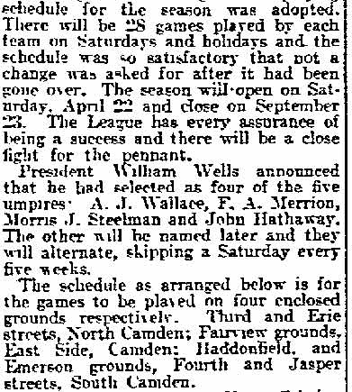 Sparks William H. Hall - john t. rodan - Rushton's Orchestra - Harry Hertline - Walter J. Stanton - Jesse Hillman Lemuel Toy - Jesse Smith - morris steelman - william elberson - Samuel S. Bacon - Albert Keaser Harry Miller - Frank Smith - John S. Roberts - George Murry - Harry Selby - Harry C. Sharp Robert Schroeder - James Vickers - Elwyn D. Steen - William Horay - Clarence H. Thorn - Wright Cox Frank S. Fithian - George F. Hammond - Albert J. Meyer - Harry Stowe - Wesley J. Stanton Thomas Dickinson - Edwin Fields - William H. Dill - Frank S. Ireton - Gustav Jans Charles H. Errickson - henry gerke - James MacDemott - George Schu - William M. Fithian Julius R. Schaaf - James Monahan - Thomas Madden - george cox - Robert J. Garrison |