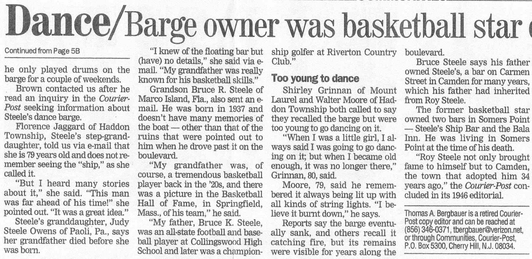 Camden Courier-Post * February 21, 2007 By Thomas A. Bergbauer, Retired Courier-Post Editor |