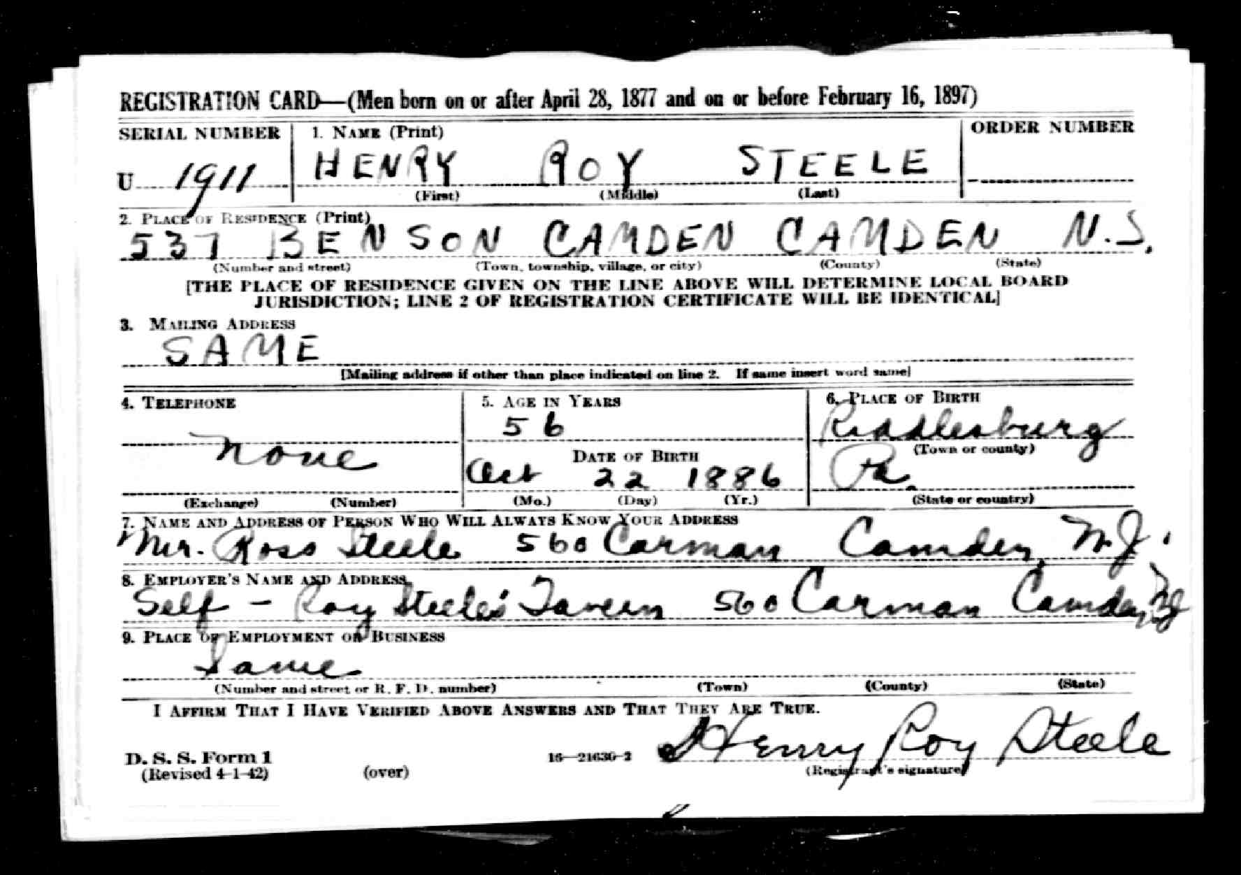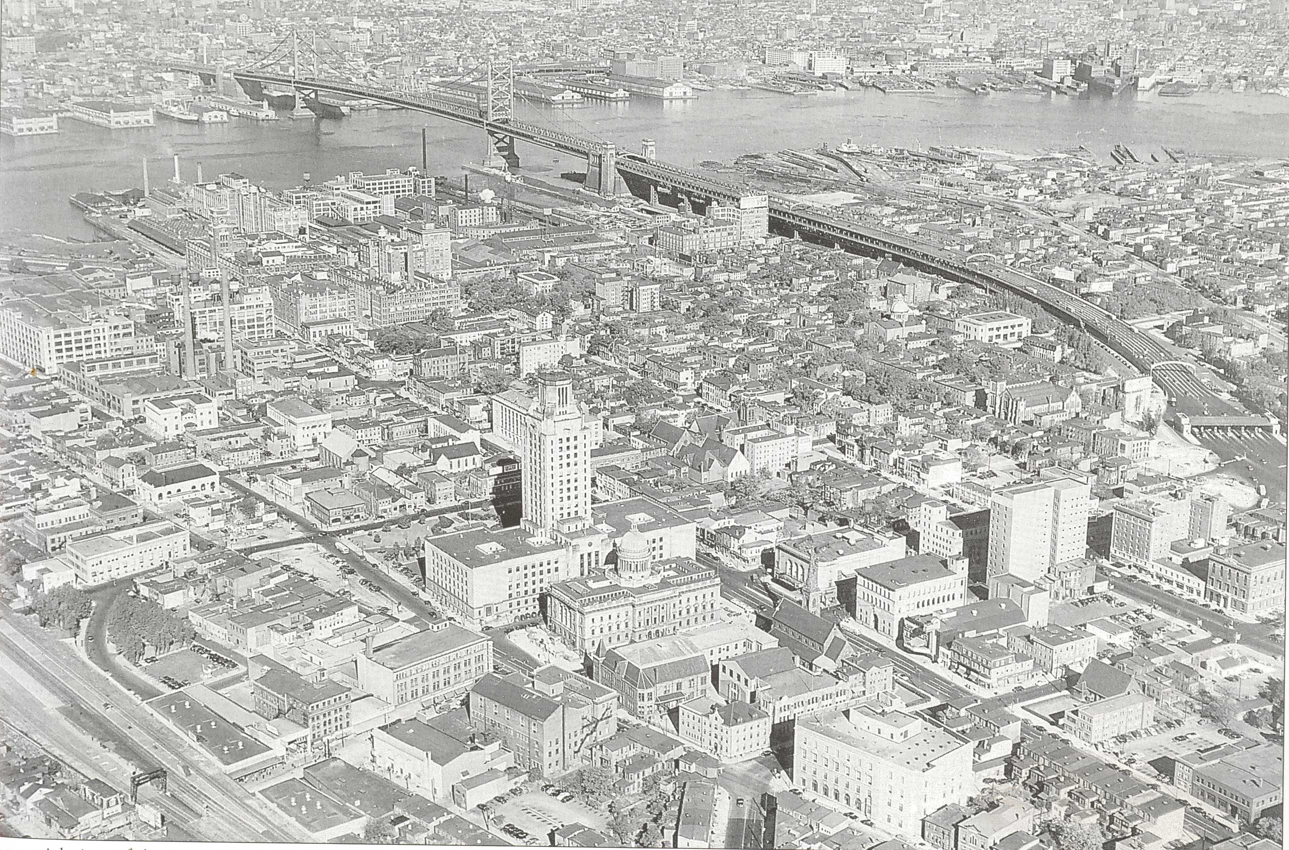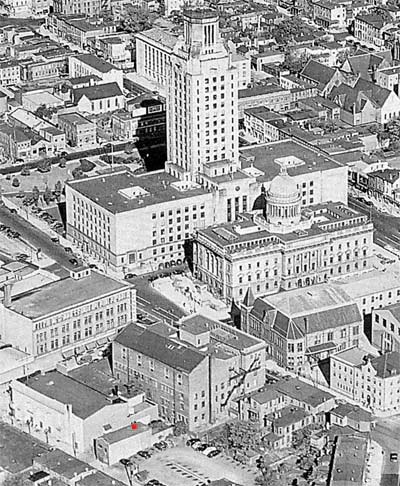 Downtown Camden - 1957 Indicated by the red dot, 565 carman street lay just east of broadway, behind the Broadway (later known as the Midway) Theater. Roy Steele's Tavern was directly across the street. To the left you can see where the tavern and carman street lay in relationship to City Hall, the old Camden County courthouse, and Camden Catholic High School. All but City Hall were gone by the end of 1961. The Parkade Building had not yet been built. |
