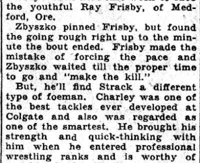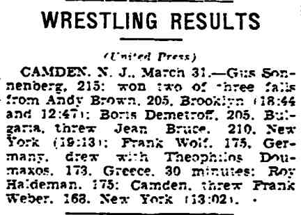 Note: The Philadelphia Inquirer stated that Fischer was the “undisputed light heavyweight wrestling champion of the world.”.