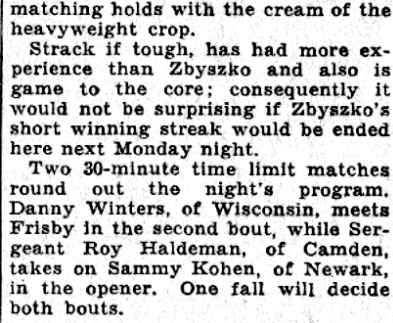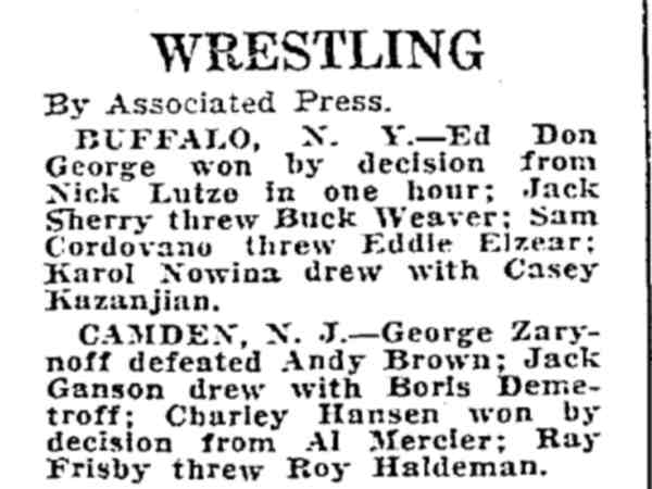 (matchmaker: Jack Pfefer) … (referee: Billy Martino) … (2,500 fans)
