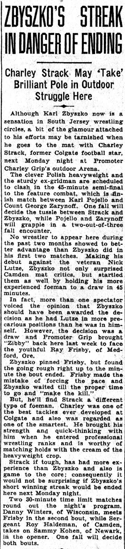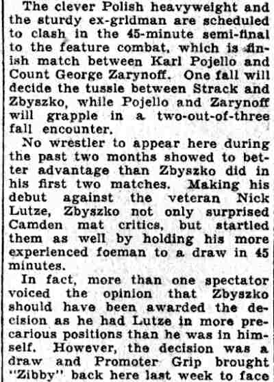 Stanislaus Zbyszko. The show was sponsored by the Democratic Glee
