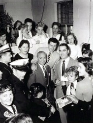 Ross (in grey suit), Eddie Fisher, and Tommy Skymer Barney Ross, born Beryl David Rosofsky, compiled a professional record of 74 wins, 4 losses, and 3 no decisons. He was world champion at lightweight, junior welterweight, and welterweight. |