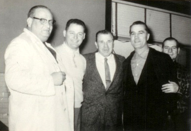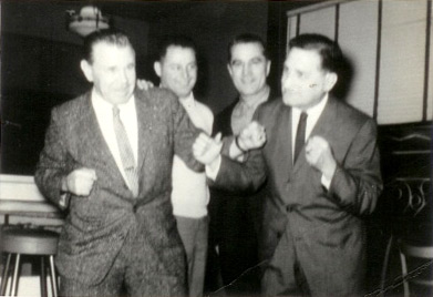 Boxers Kenney's Suburban House February 27, 1960 This appears to be from a Veteran's Boxing Association Ring No. 6 Banquet. At far left, seated, is Arnold "Jersey Joe Walcott" Cream, standing behind him wearing glasses is Joe Brennan. On the left side of the table, unknown, Tommy Skymer, Lew Skymer, unknown, and Les Cranmer. |