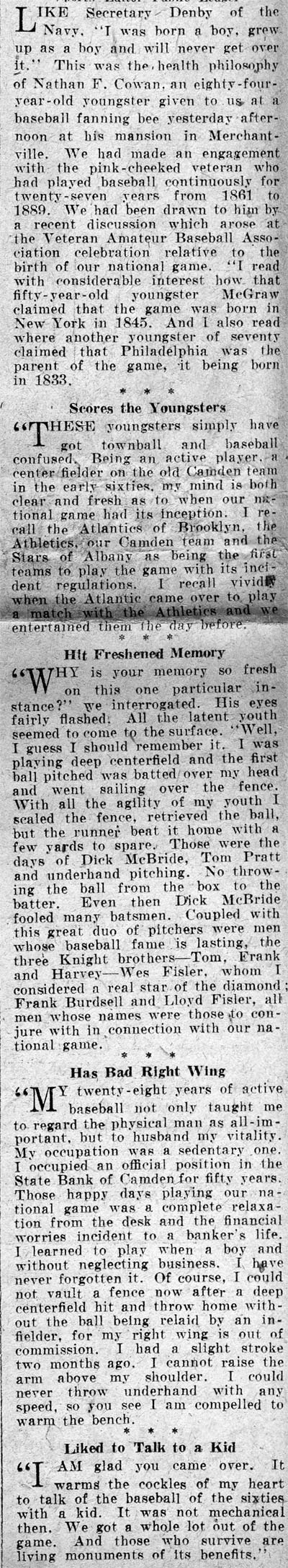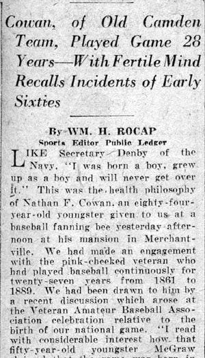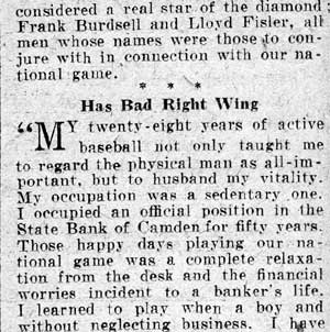 he retired from baseball, Wes Fisler returned to Camden NJ. He appears