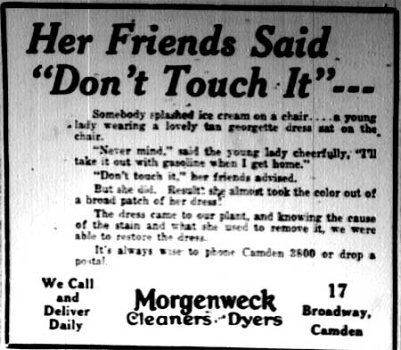 WILLIAM E. "BILLY" MORGENWECK was born September 9, 1869 in New York State. He was, with a relation, Frank "Pop" Morgenweck, one of the organizers of the first basketball league in the United States in the 1890s, the National Basketball League. Billy Morgenweck took to the then-new game as well, as an owner and player-coach of the Camden Electrics. The Electrics, paced by star guard Charles Bossert, were one of the top teams of the early 1900s, playing at the old Sixth Regiment Armory at West and Mickle Streets. The 1902-03 Electrics won 36 times against only 9 defeats. As Camden won both halves of the season they were awarded the NBL pennant and cup without the necessity of any playoff games. He also coached Charlie Newcomb, who went on to fame as a trap shooter. The league folded during the 1903-04 season. Billy Morgenweck was subsequently sued by investors in the team, including local businessman Sig Schoenagle. After the breakup of the NBL, Billy Morgenweck left the sport, but returned as coach of the Camden Alphas in the Eastern Basketball League in the 1910s, tying for first in the league in 1913-14 and 1914-15. By 1920 he owned a property at 17 Broadway, near Federal Street, in Camden, where he lived and operated a dry cleaning and tailor's shop, with wife Margaret and son William P. Morgenweck. He also served on the board of directors of the American National Bank of Camden, which was located at Broadway and Liberty Street, in 1927 and 1928. Other directors then were Joseph B. Stern and D.L. Pinson.. Billy Morgenweck passed away on March 5, 1930 while fishing in Florida. Survived by his wife Margaret and son William P. Morgenweck, who owned a dyeing factory. Billy Morgenweck was buried at Harleigh Cemetery in Camden NJ. |