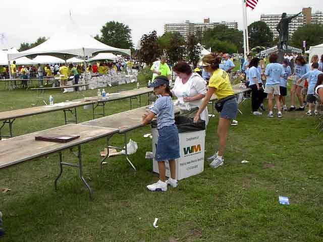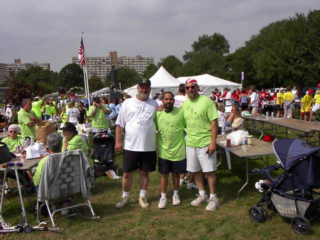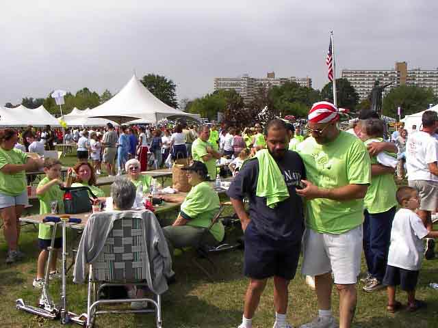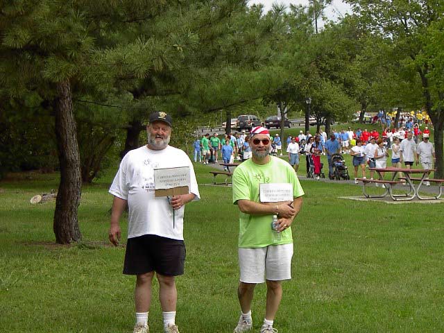 WALKING TO FIND A CURE! Legionnaire Jesse Lawrence and SAL Dave Mendez joined over a thousand other community minded people in a walk around Cooper River Park in Pennsauken NJ on September 28, 2003. Walking as part of Zachary's Gang, Jesse and Dave raised $369 toward finding a cure for Juvenile Diabetes. Zachary's Gang raised over $3600 in total. Zachary's Gang takes its name from Zachary Franchi, the son of Camden businessman Jeff Franchi, who is afflicted with the disease. With support from Post 274 Ladies Auxiliary, local businesses, and the energetic presence of SAL Ricky Duran, Post 274 stepped up and stepped out, proudly serving. |