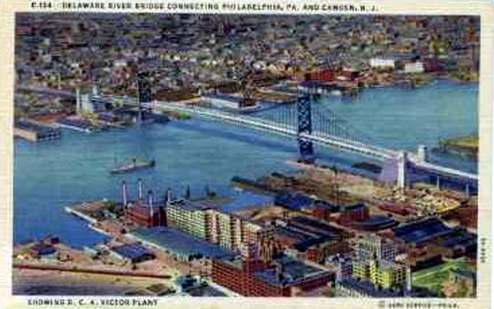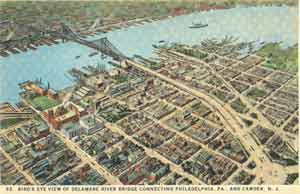 Eye View Of Delaware River Bridge Connecting Philadelphia, Pa. and Camden N.J." Postcard is from around 1926 |