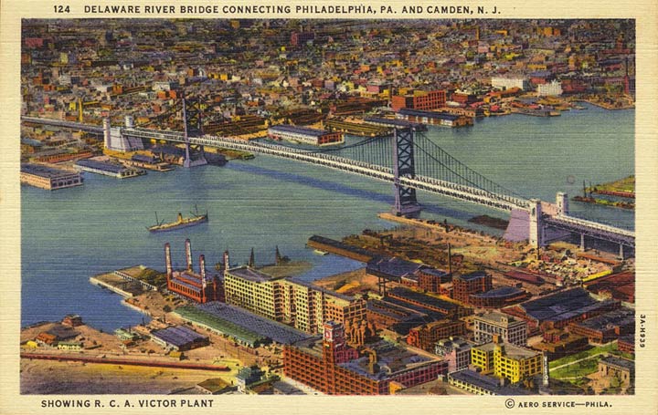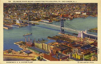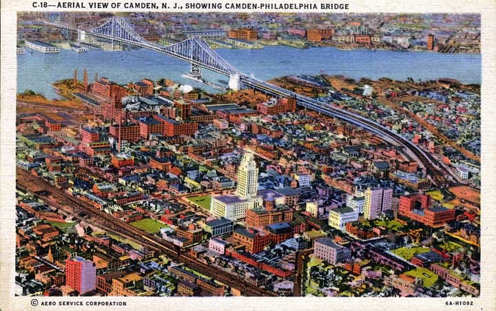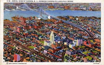 View of Camden Showing Camden-Philadelphia Bridg" Postcard is from around 1946 |
