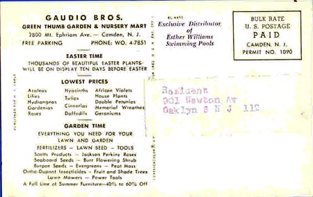 Brothers Green Thumb Garden Market & Nursery 2800 Mt. Ephraim Avenue Click Here For Rear Of Card |