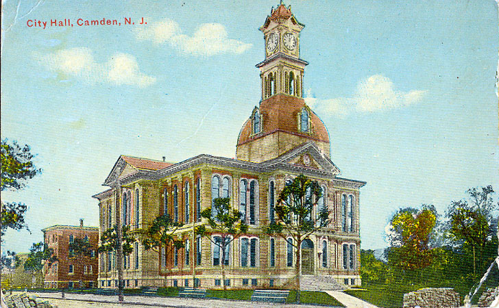 postcards above and below are of Camden's SECOND City Hall, built by