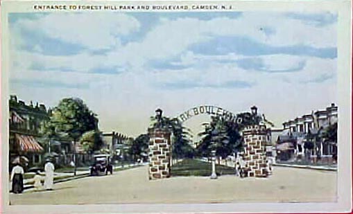 "Entrance to Forest Hill Park and Boulevard" Park Boulevard & Haddon Avenue about 1915 |